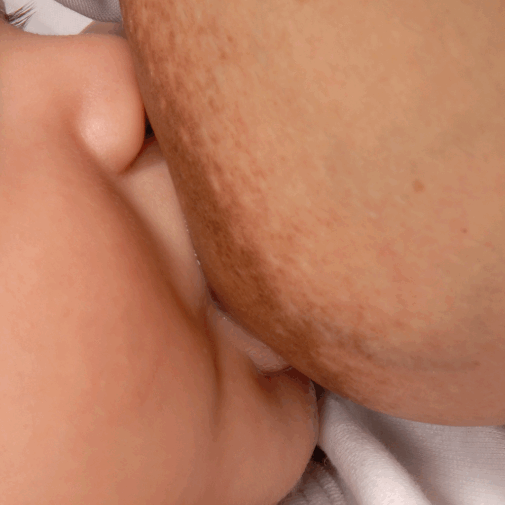 赤ちゃんは、自分の舌でママの乳輪をキュッキュッと刺激しながら母乳を飲みとっていきます。なので、乳首だけくわえていても飲めません。